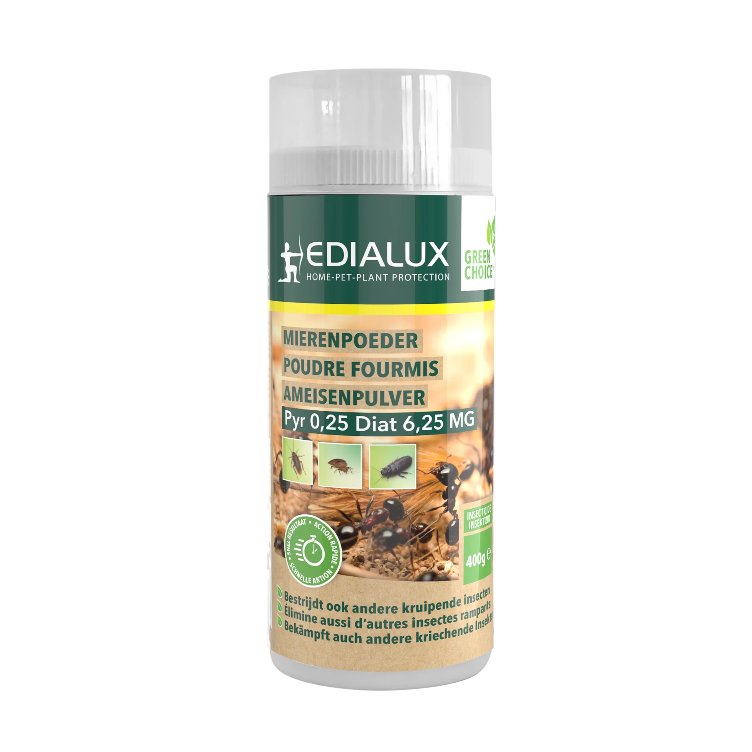 Dit is een microgranulaat voor de bestrijding van mieren en andere kruipende insecten, zoals kakkerlakken, zilvervisjes, pissebedden, teken en vlooien. Pyrethrum, een product van plantaardige oorsprong, werkt binnen enkele minuten na contact in op het zenuwstelsel van het insect. Diatomeeënaarde werkt als mechanische verstoorder en biedt een langdurige bescherming tot 3 maanden, afhankelijk van de oppervlakte. Dit poeder kan ook opgelost worden in water ter bestrijding van mierennesten.