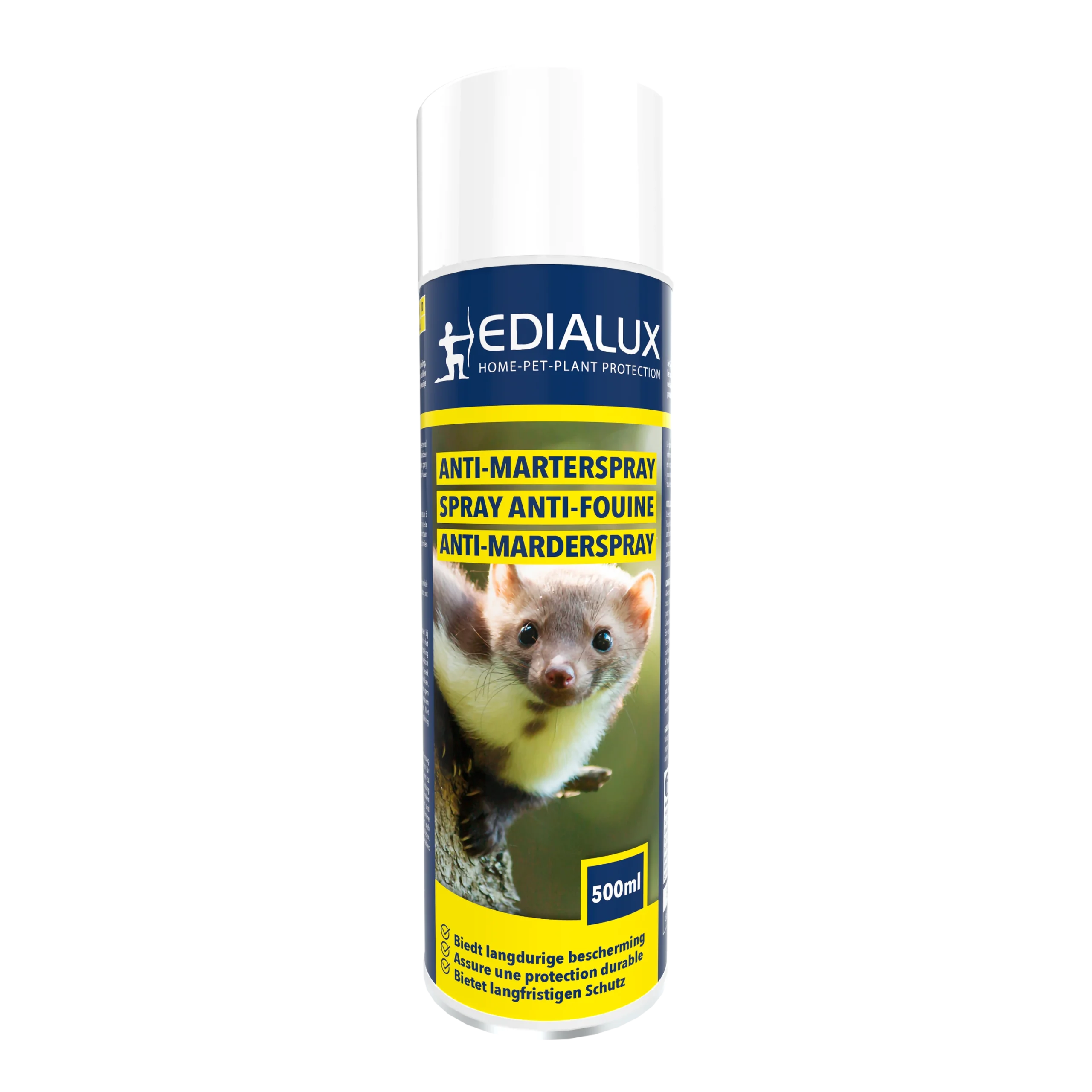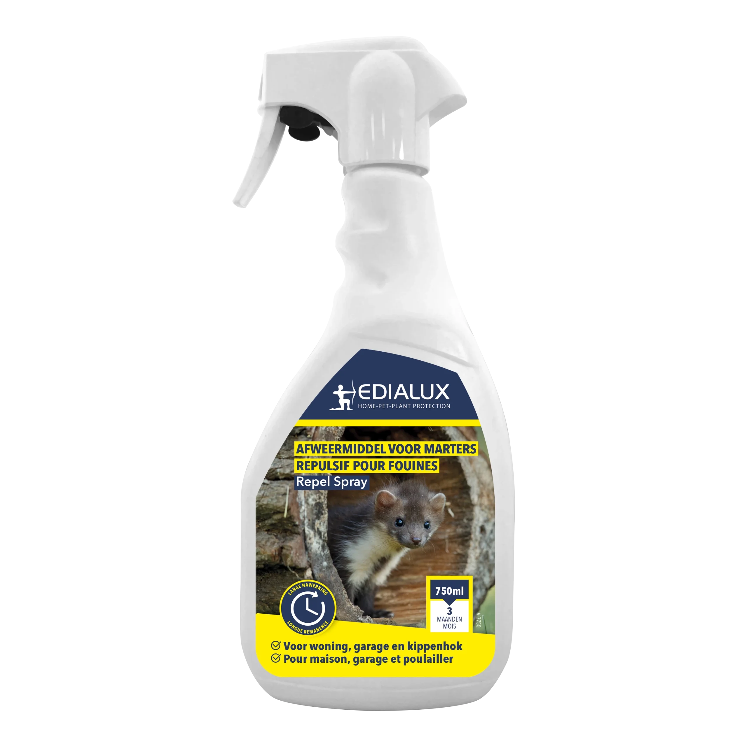 Vloeibaar afweermiddel op basis van etherische oliën met afschrikkend effect tegen marters. Zij zullen de omgeving van de behandelde oppervlakken onmiddellijk mijden. De spray heeft een langdurige doeltreffendheid tot wel 3 maanden en werd getest op meer dan 20 verschillende materialen (hout, plastiek, nylon, pvc, aluminium, katoen, wol, leer…) Zo ben je snel en permanent verlost van ongewenst marterbezoek.