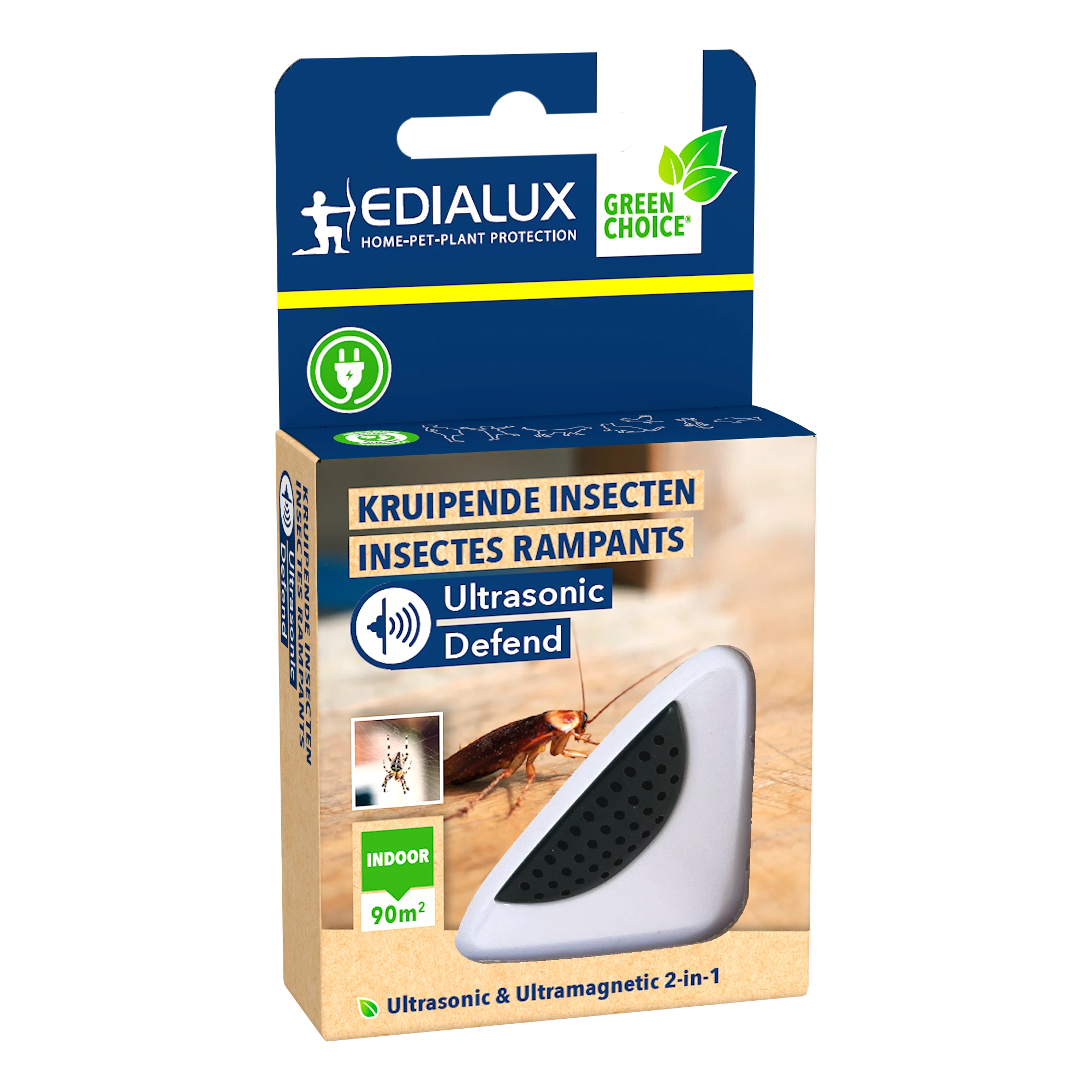 Ultrasoon apparaat voor binnenshuis tegen kruipende insecten. Het ultrasoon geluid van dit toestel is onhoorbaar voor mensen en honden, katten, vogels, vissen en reptielen. Na 2 tot 4 weken continu gebruik verdwijnen ongewenste insecten zoals spinnen en kakkerlakken omdat zij zich niet kunnen aanpassen aan de krachtige ultrasone trillingen waarvan de frequentie constant verandert.