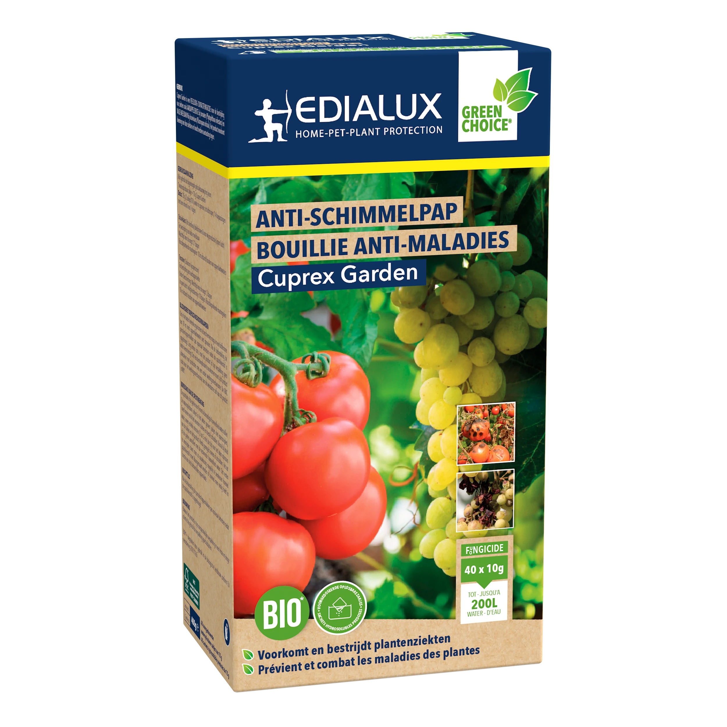 Cuprex Garden is een veelzijdig contactfungicide voor de bestrijding van ziekten zoals aardappelziekte bij tomaten (phytophthora infestans) en valse meeldauw bij druivelaars (Plasmopara viticola). Het product voorkomt kieming van deze ziekten en houdt verdere aantasting tegen.