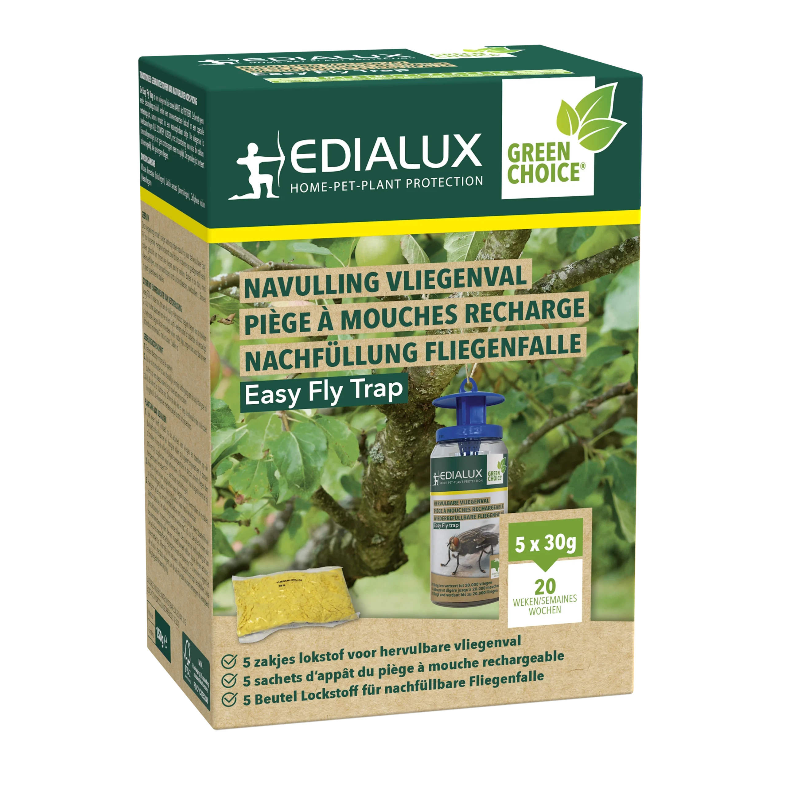 De Fly Giant emmer vangt een grote hoeveelheid vliegen en is ideaal voor het bestrijden van vliegenplagen. Geschikt voor paardenmaneges, stallen, boerderijen en andere locaties met vliegenoverlast. De emmer is te gebruiken in combinatie met de lokstof FLYBOTREC. Deze lokstof wordt apart geleverd in wateroplosbare zakjes en is hierdoor zeer gebruiksvriendelijk, gifvrij en bijzonder effectief. De lokstof blijft ongeveer 4 weken actief (meer informatie over de FLYBOTREC lokstof op pagina 53).*
