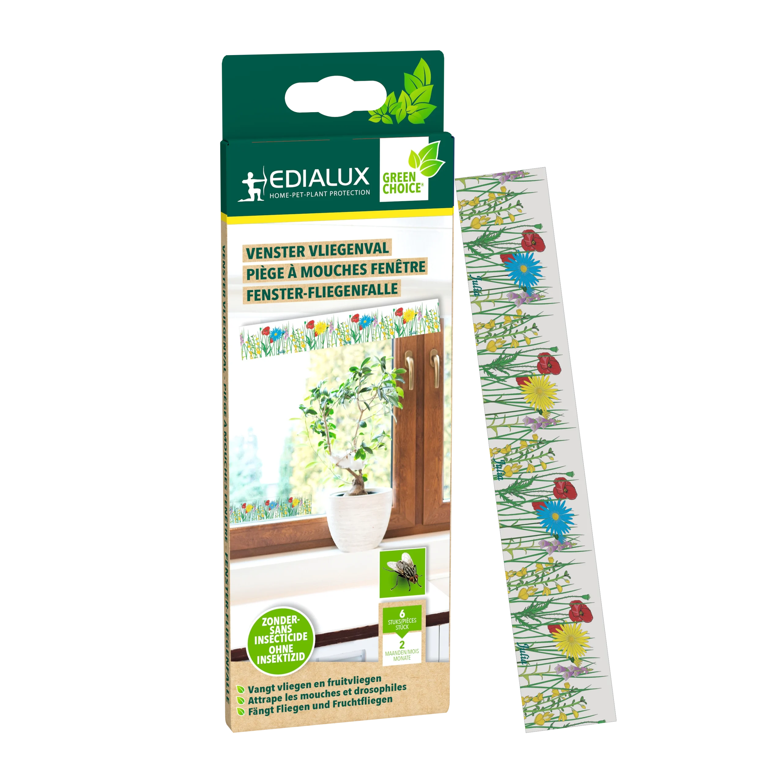 De Fly Trap is een vliegenval die zowel vangt als verteert. ze bevat geen enkel bestrijdingsmiddel, enkel een onweerstaanbare lokstof en een speciale verteringsgist, samen verpakt in een wateroplosbaar zakje. de vliegenval is werkzaam tegen alle soorten vliegen, met uitzondering van deze die steken. Eenmaal gevangen, is er geen ontsnappen meer mogelijk. De speciale gist verteert onherroepelijk alle gevangen vliegen.