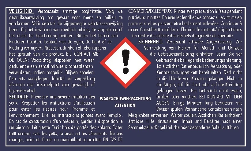 Conseils de prudence : P101;P102;P262;P270;P501;P305+P351+P338;P313