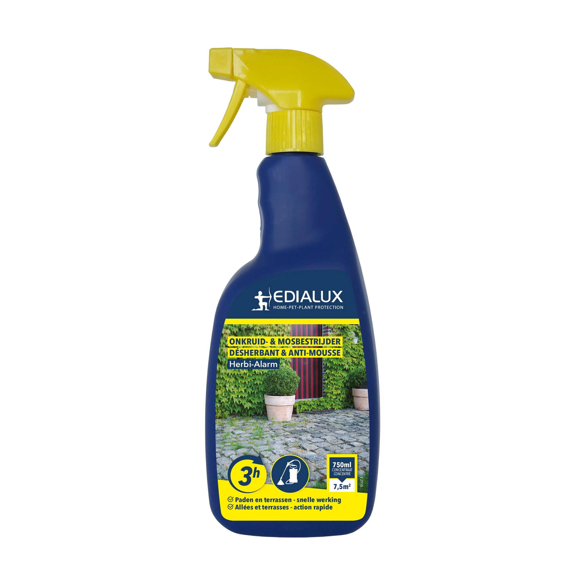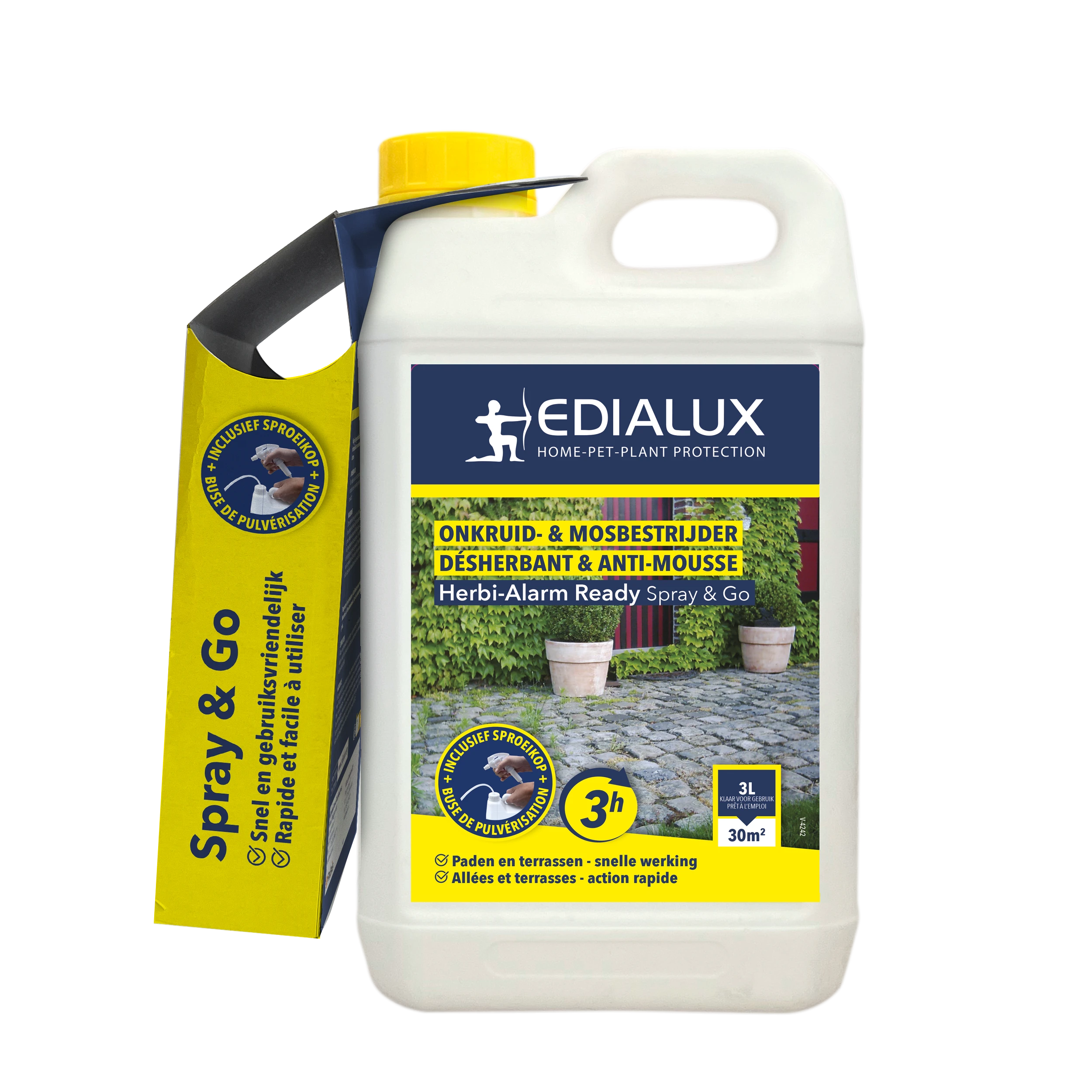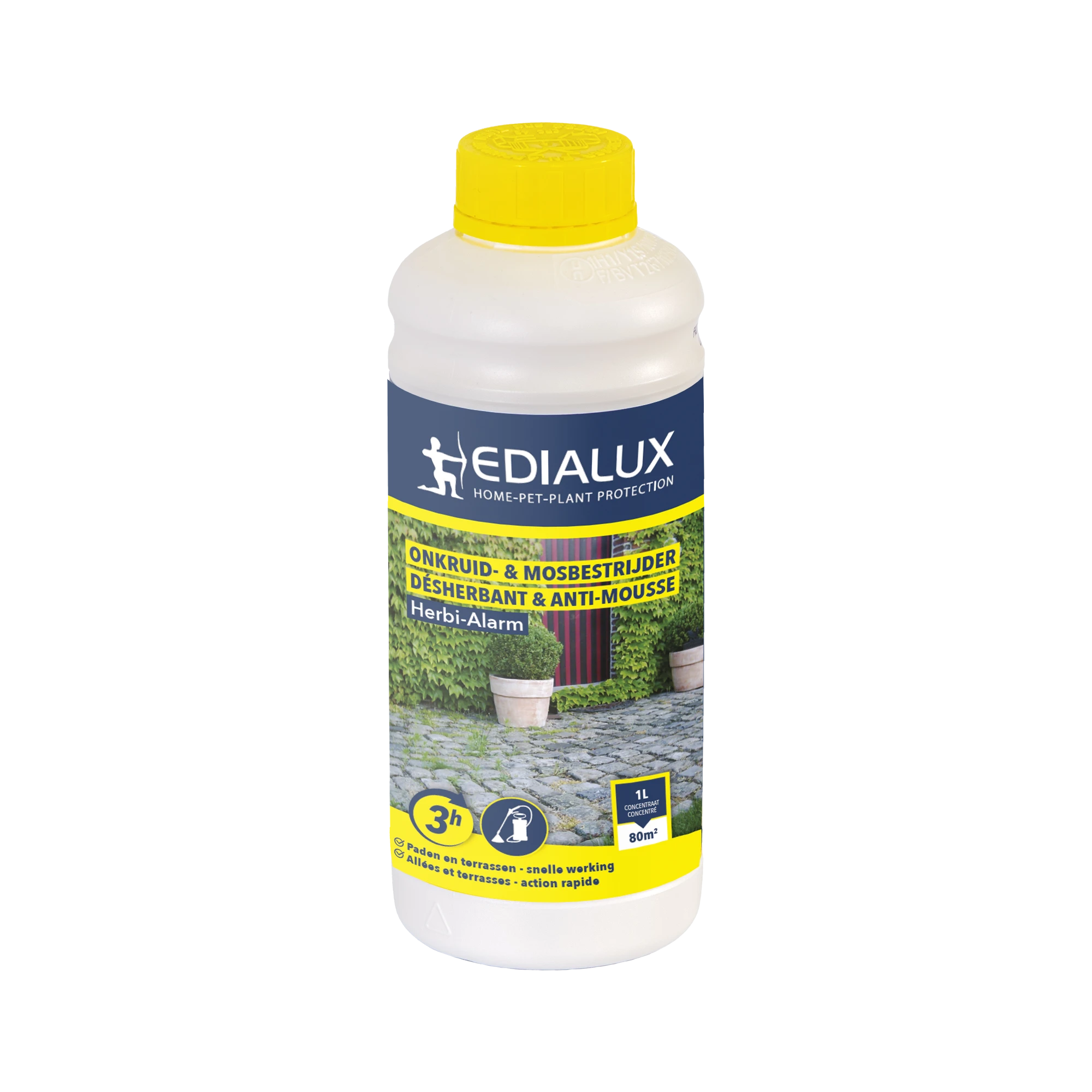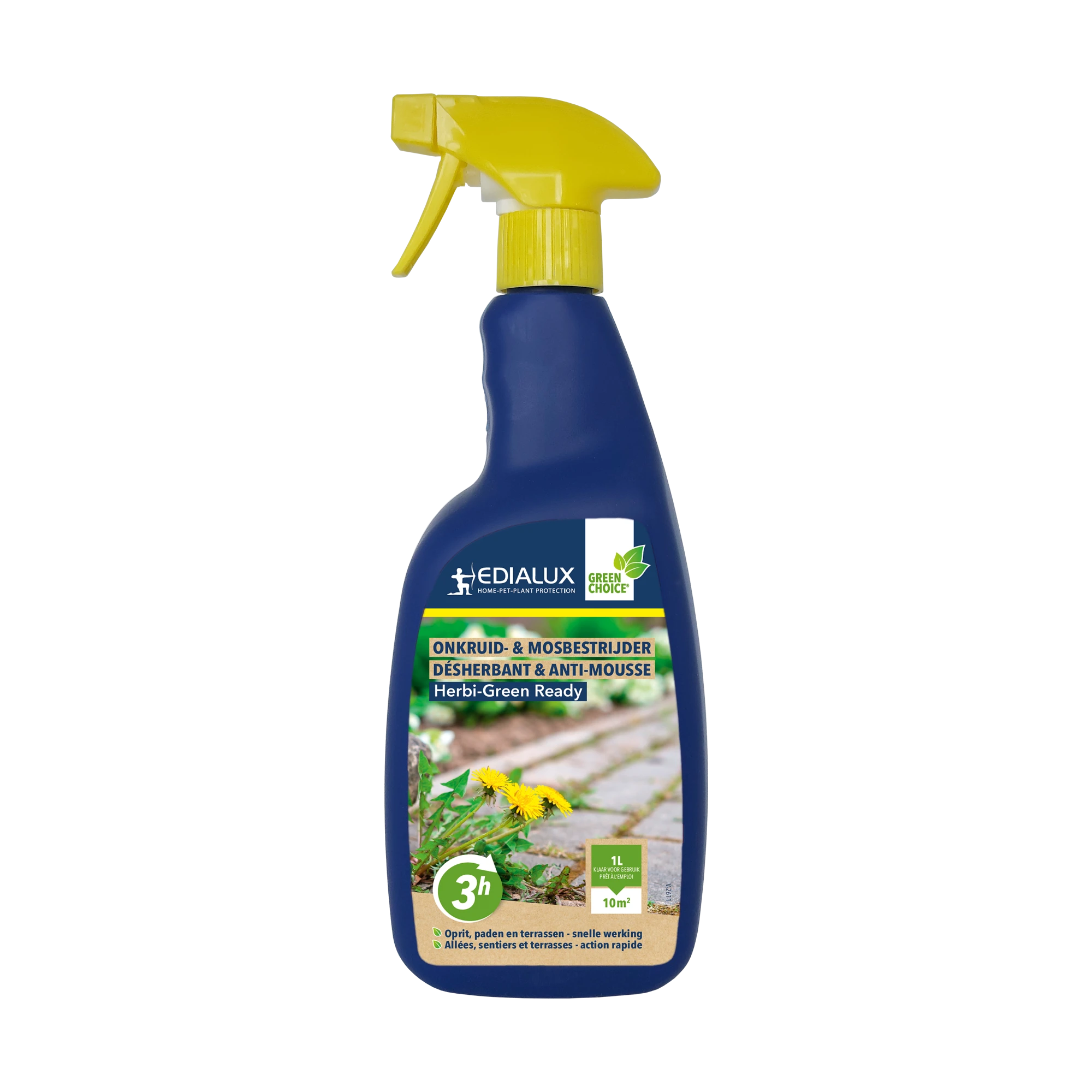 Resultaat binnen 3uurTotale onkruid- en mosbestrijder op basis van pelargonzuur voor de behandeling van de hardnekkigste onkruiden op zowel verharde als onverharde ondergronden. Het schakelt éénjarige onkruiden en mos snel uit door uitdroging. Na toepassing op de plant zal de celwand van de plant worden aangetast, waardoor de plantcellen leeglopen. Dit leidt tot een volledige uitdroging van het plantenweefsel. Het product is biologisch afbreekbaar in de bodem in minder dan 2 dagen.