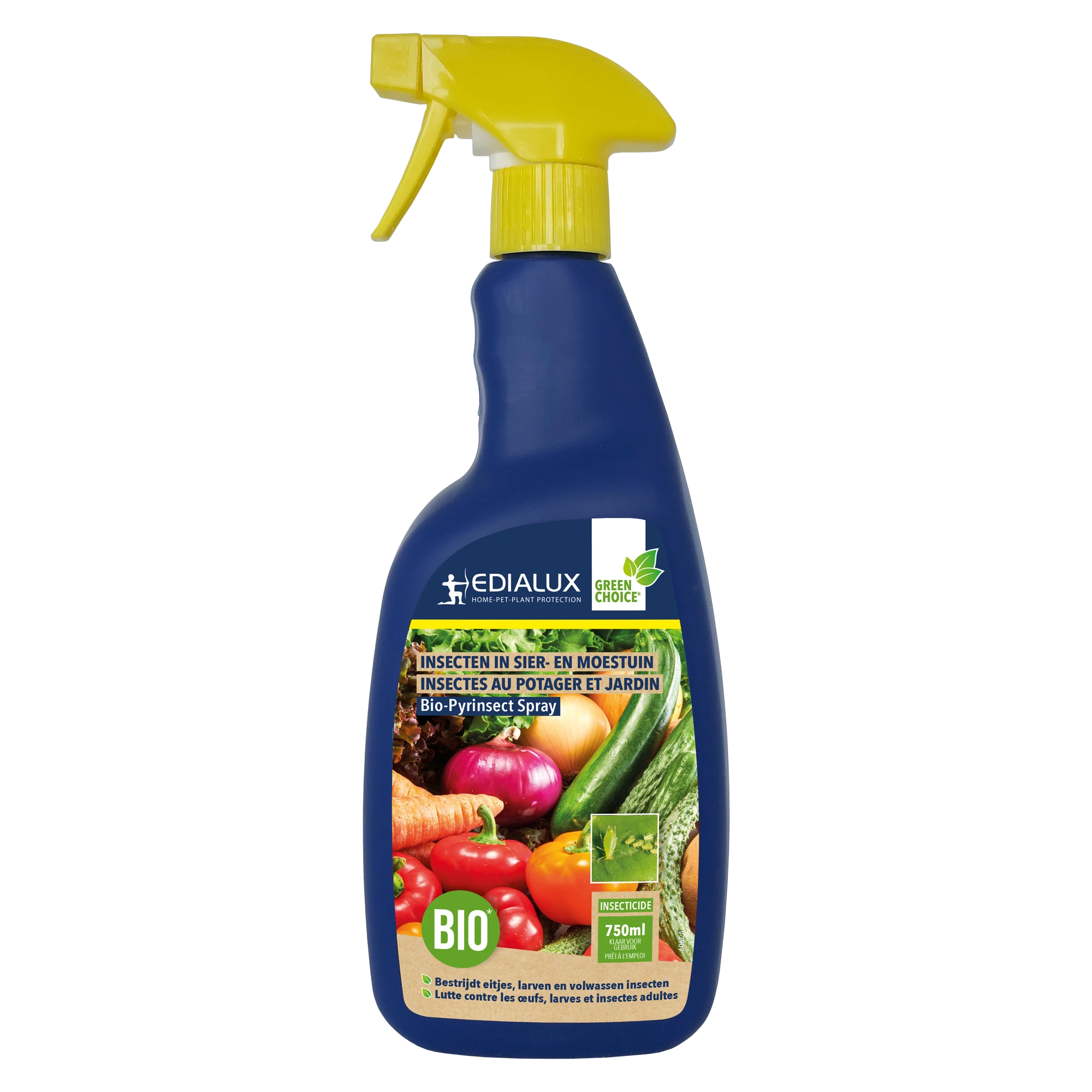 Insecticide met heel breed werkingsspectrum voor de bescherming van sierplanten en potplanten in open lucht en onder bescherming, groenten en fruit tegen bijtende en zuigende insecten: bladluizen, kevers, wantsen, rupsen, preimot, koolgalmug, erwtengalmug, allerlei groentevliegen, perebladvlo, appelbladvlo, trips en witte vliegen. Het product is regenvast na twee uur en heeft een werking van twee weken.