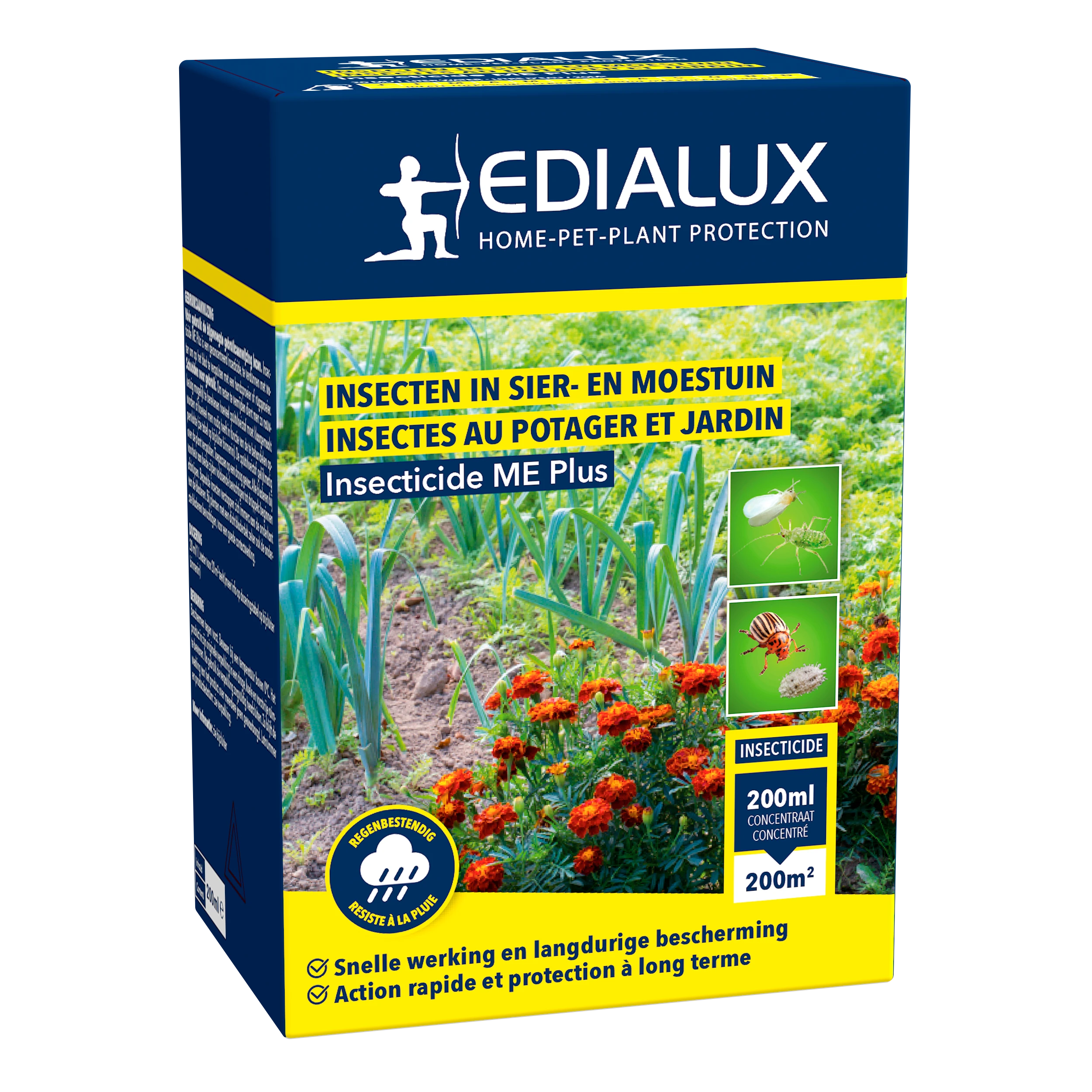 Insecticide ME Plus is een insecticide met heel breed werkingsspectrum voor de bescherming van sierplanten en potplanten in open lucht en onder bescherming, groenten en fruit tegen bijtende en zuigende insecten: