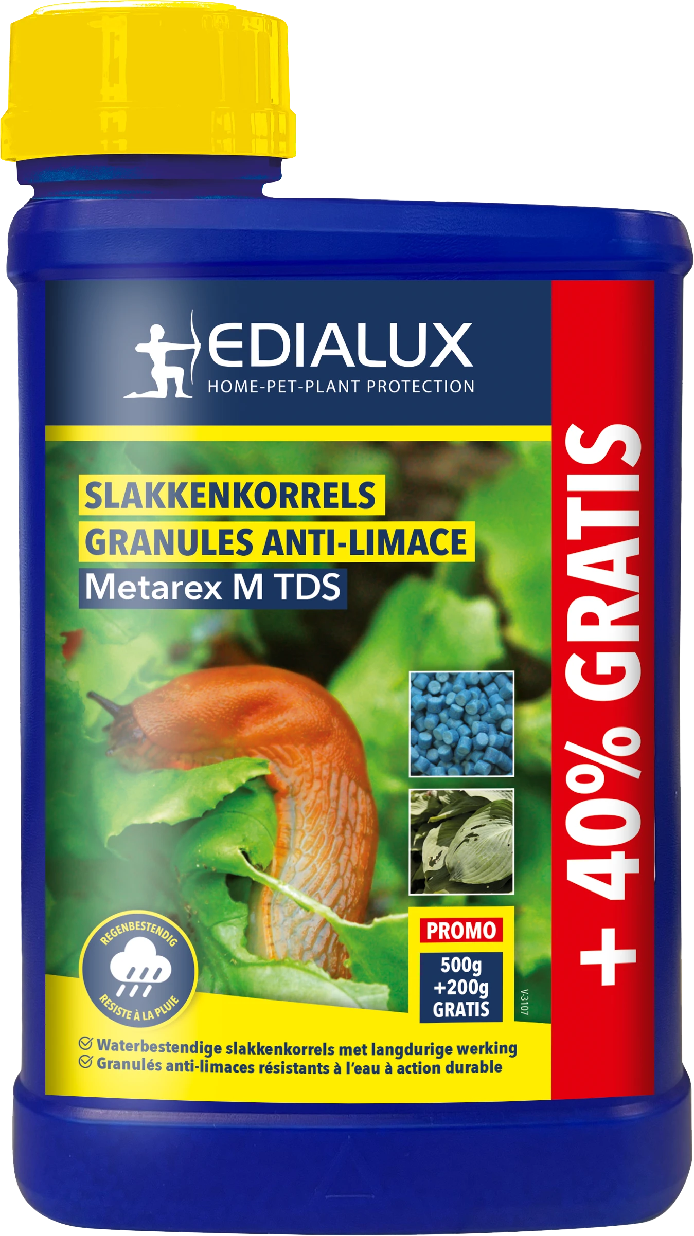 Metarex M TDS is een zeer langwerkende en regenbestendig slakkenkorrel, dankzij de enorm vaste structuur. Hierdoor is hij stofvrij en ook zuinig in gebruik. Deze korrel bevat het extra aantrekkelijk bestanddeel “Colzactive”. Garandeert een nog betere werking met veel minder actieve stof. Handige strooibus met doseerdop en kindveilige sluiting.