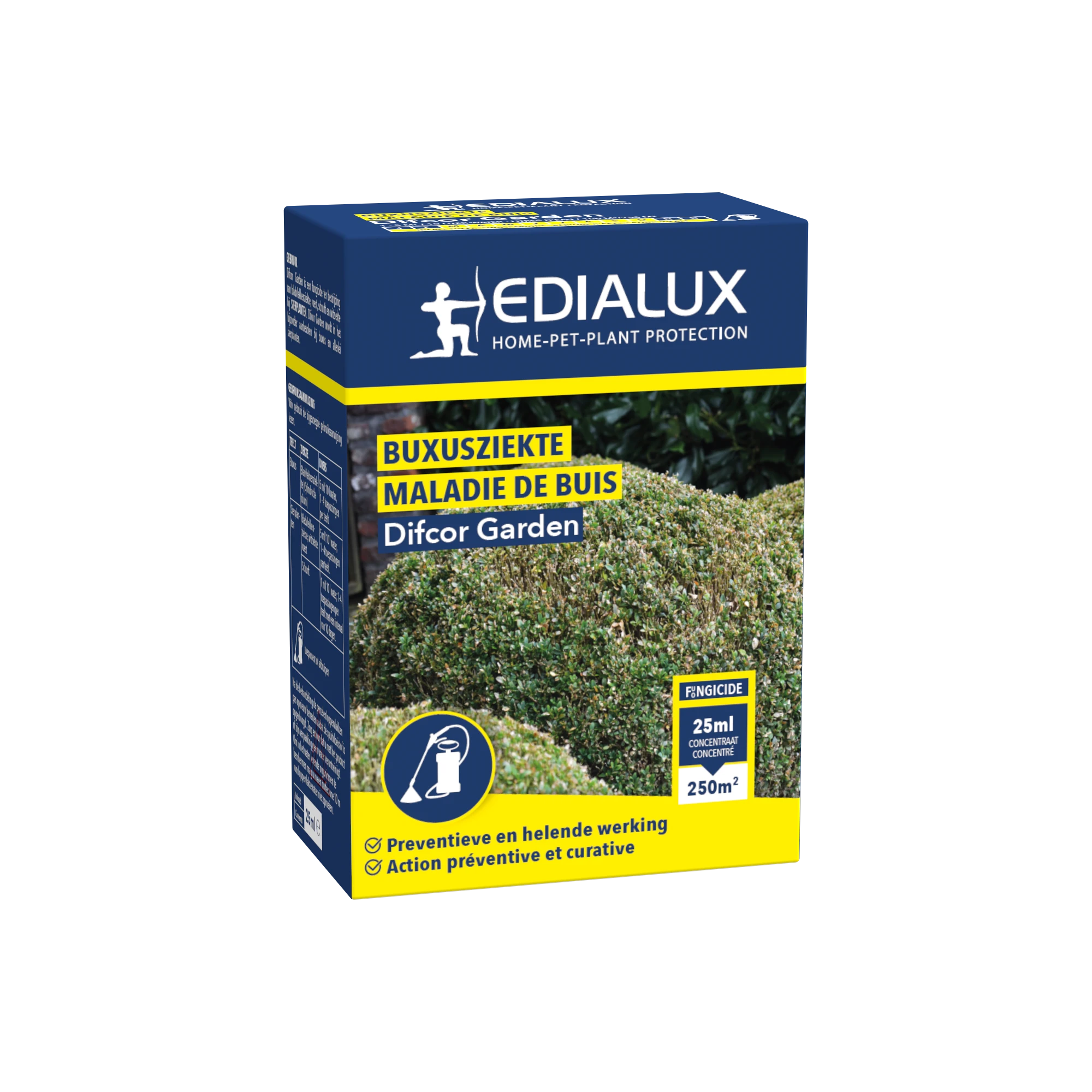Difcor Garden Buxus is een ziektebestrijder tegen taksterfte bij buxus. Het is een systemisch fungicide met een preventieve en helende werking.