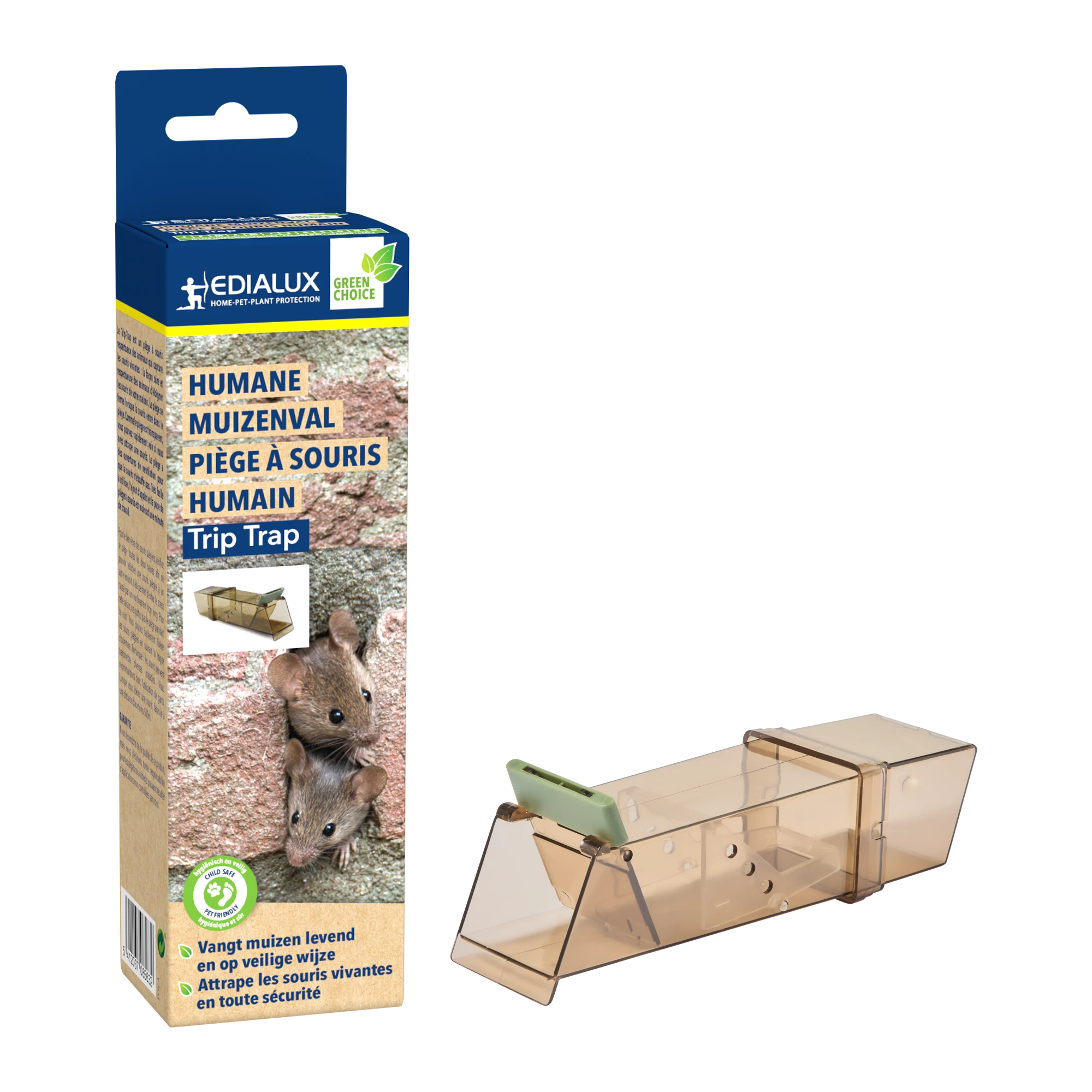 100% veilige muizenvallen vervaardigd uit kunststof, waarbij je eerst het lokaas kan aanbrengen alvorens de val op te spannen. Val op te spannen met één enkele klik. Je loopt hierdoor niet langer een risico om met je vingers tussen de val te zitten. De gevangen muizen kunnen ook verwijderd worden zonder dat je hen moet aanraken waardoor deze val makkelijk herbruikbaar is. Het lokaasreservoir kan je invullen met een lokaas naar keuze.