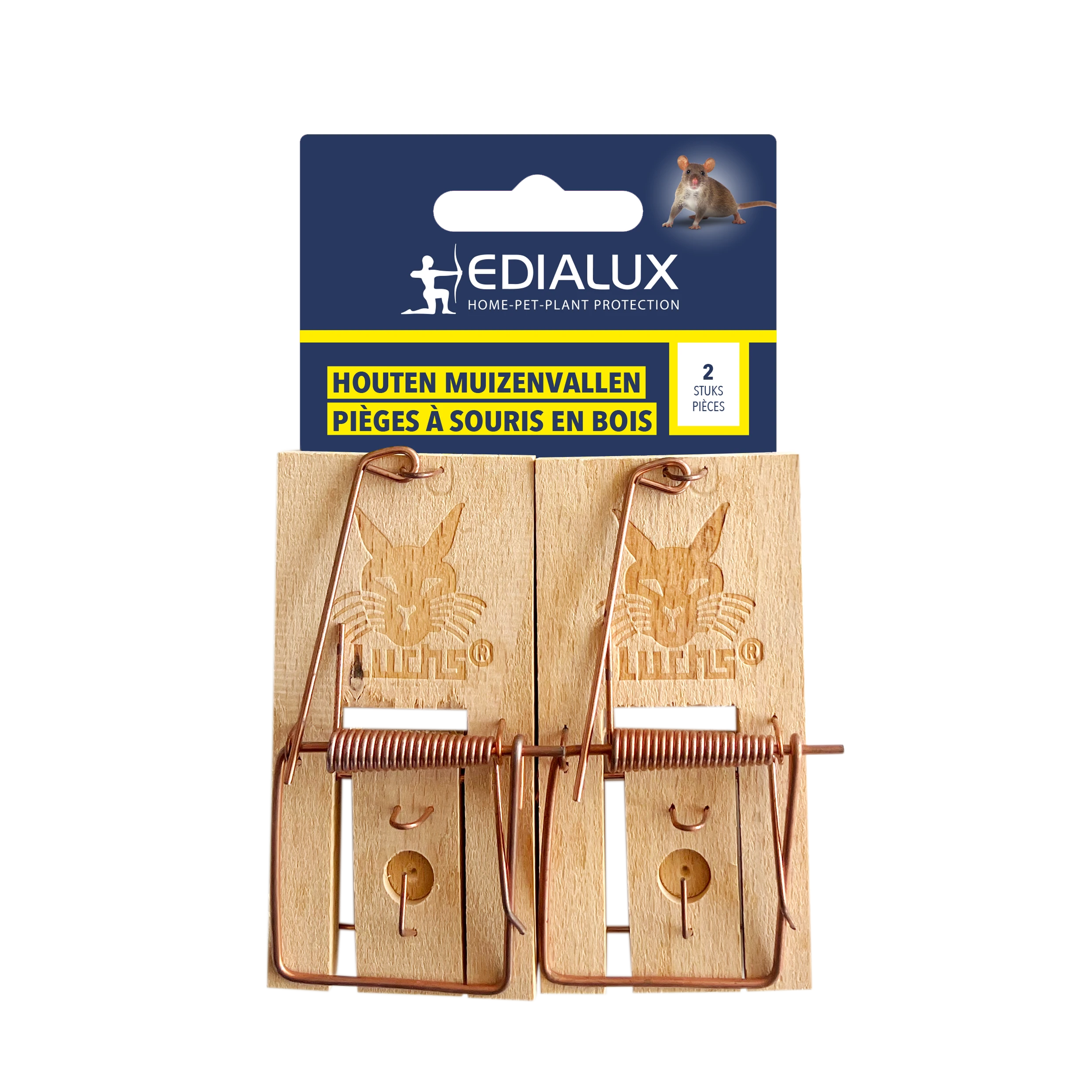 Traditionele klassieke houten klapval voor muizen, de meest bekende en eenvoudigste manier om van muizen af te komen zonder gif te gebruiken. De muizenvallen zijn gemaakt van beukenhout met aashouder en staalveer met een hoge slagkracht. Ook na veelvuldig gebruik blijft de slag krachtig.
