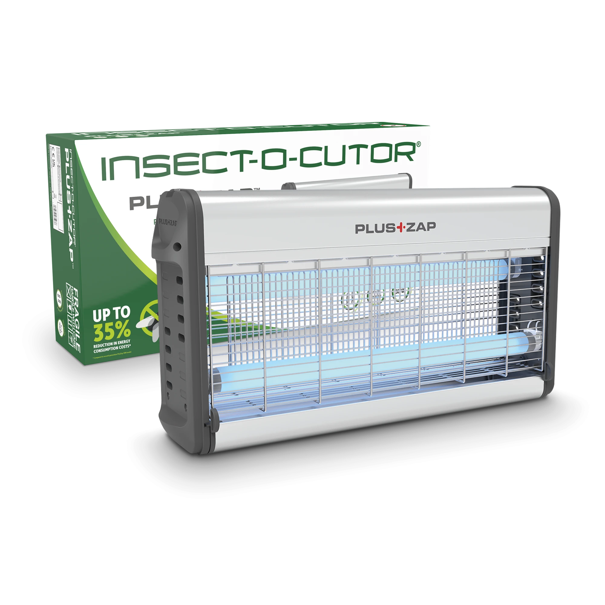 Electrische vliegenvanger die zowel vrijstaand als aan de wand of plafond gebruikt kan worden. Vernieuwd, slanker design met aluminium frame en chrome rooster en maar liefst 35% minder energieverbruik. De vliegenlamp biedt een eenvoudige toegang tot de roosters en lampen zonder gereedschap voor een snelle en efficiente service. De opvangbak is eenvoudig verwijderbaar, waarbij ter beveiliging de stroom automatisch onderbroken wordt. Beschikbaar in 16 watt (met 2 x PlusLamp™ Plus van 8 watt) voor een vangbereik van 40 m² en in 30 watt (met 2 x PlusLamp™ Plus van 15 watt) voor een vangbereik van 80m²